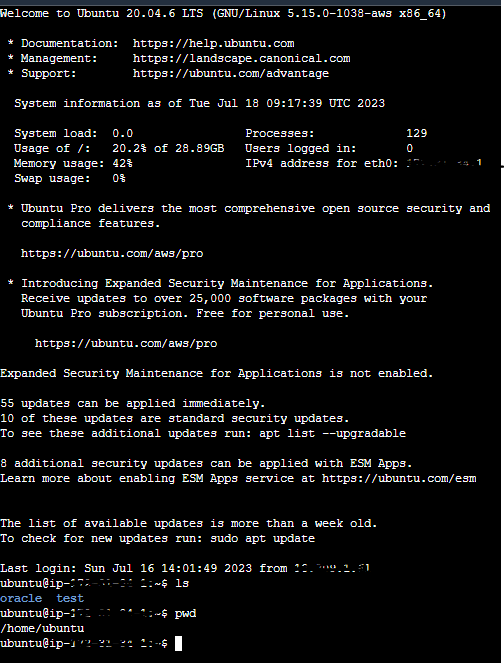 - open후에 창이 뜨고 login as: 라는 칸에 ubuntu라고 입력하면 접속이 된다.
