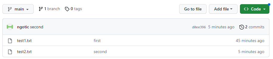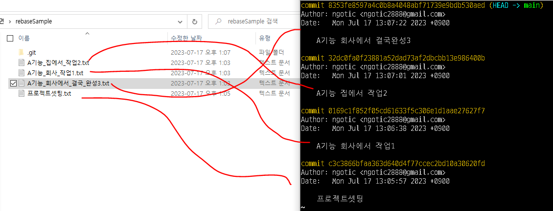 - 결과적으로 아래와 같이 커밋이 하나로 합쳐진 것을 볼 수 있다. 그리고 파일은 모두 그대로 남아있다.