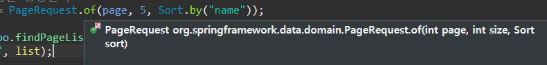 - 반환값은 PageRequest라는 객체를 반환하며 findPageListBy라는 메서드로 엔터티 형식 객체로 바꿔준다.